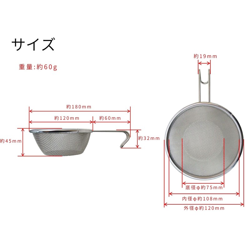Takagi KANUCHI OUTDOOR Colander Strainer, Scooping Up Colander, Easy to Hold, One-Handled Handle, Rust Resistant, Stainless Steel, Silver, 14 Mesh, 0.07 inch (1.81 mm) Pitch, Strainer Net, Camping,