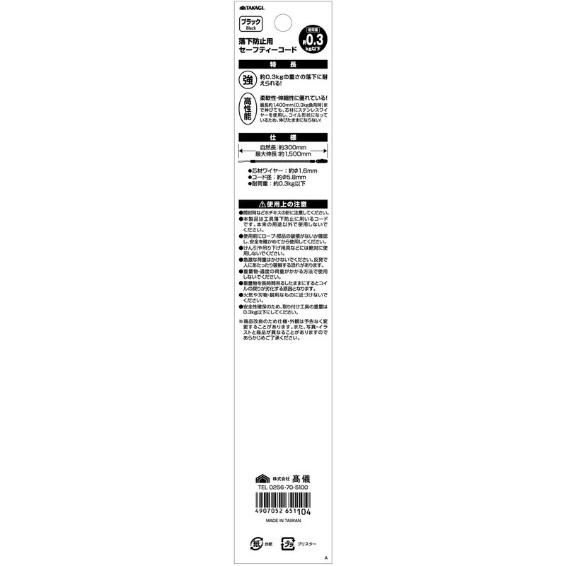 Takagi Safety Cord, Black, 0.7 lbs (0.3 kg)