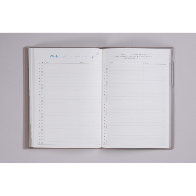 - Product Details 2: Cover Type: Soft Cover; Imprint Color: 3 Colors; Number of Pages: 208 pages; Specifications: Pen holder, monthly index; Supplements: Age Chart, ID, Password List, Book List, Movie List, Japanese Map, World Map, Personal Data, Dot Notes; Separate Notebook: None