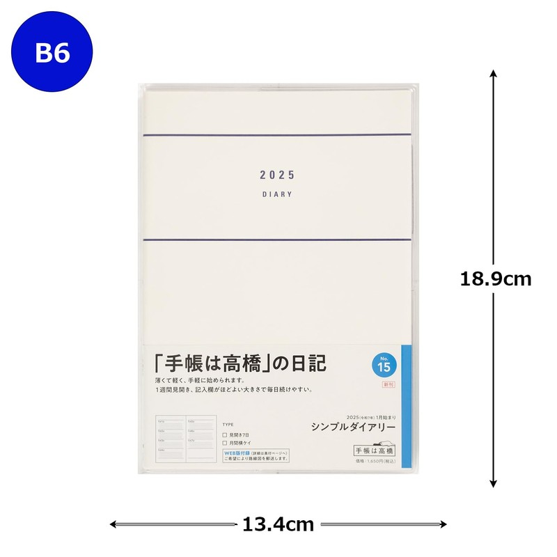 Takahashi Notebook, 2025 B6, Simple Diary, No.15 (Begins January 2025)