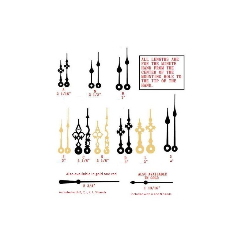 Takane Quartz Clock Movement Mechanism, Choose your hands and sIze, USA made (7/16" threaded shaft for dials up to 1/4" thick, C hands with gold second hand)