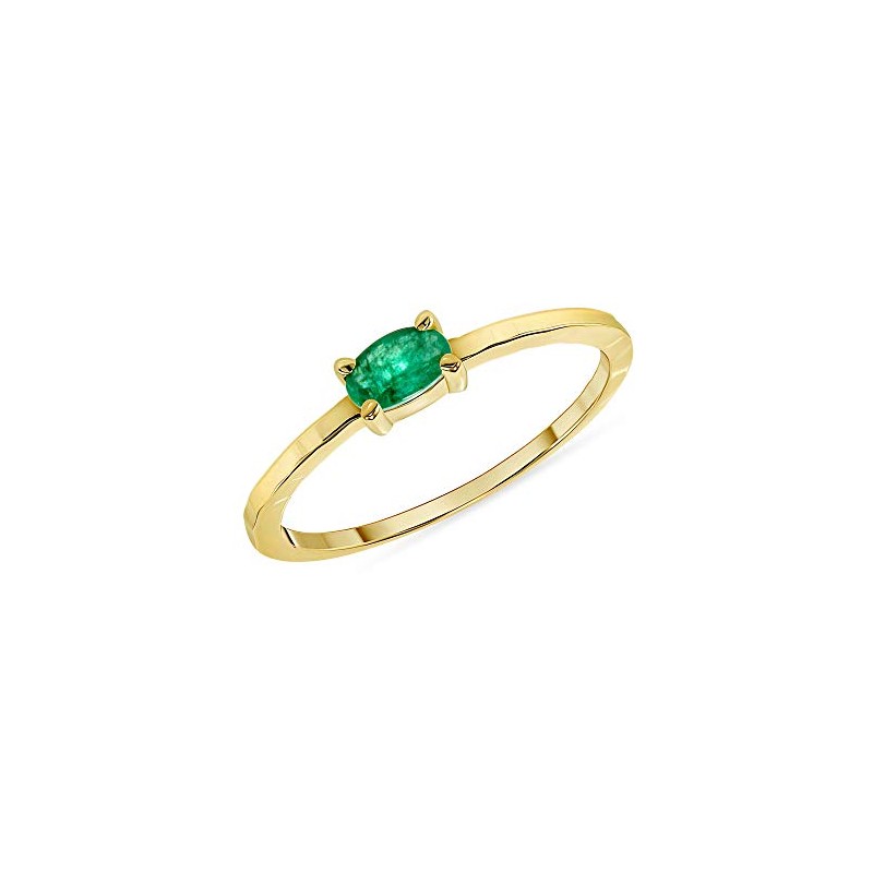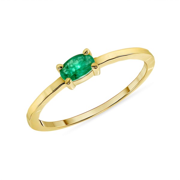 - A modern 5 x 3 mm Oval-Shaped Genuine Emerald ring in a pure gold topped with a high polished finish. A stylish looking promise band perfect for your unique collection and to compliment your brilliance!