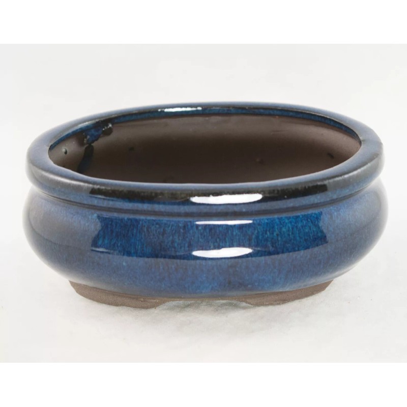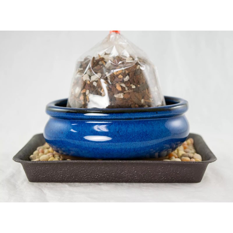 Takashima 5" Oval Blue Stain Glazed Bonsai / Succulent Pot + Soil + Tray + Rock + Mesh Kit