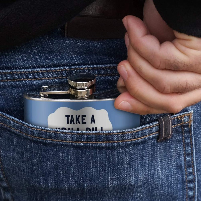 Take a Krill Chill Pill Funny Humor Stainless Steel 5oz Hip Drink Kidney Flask