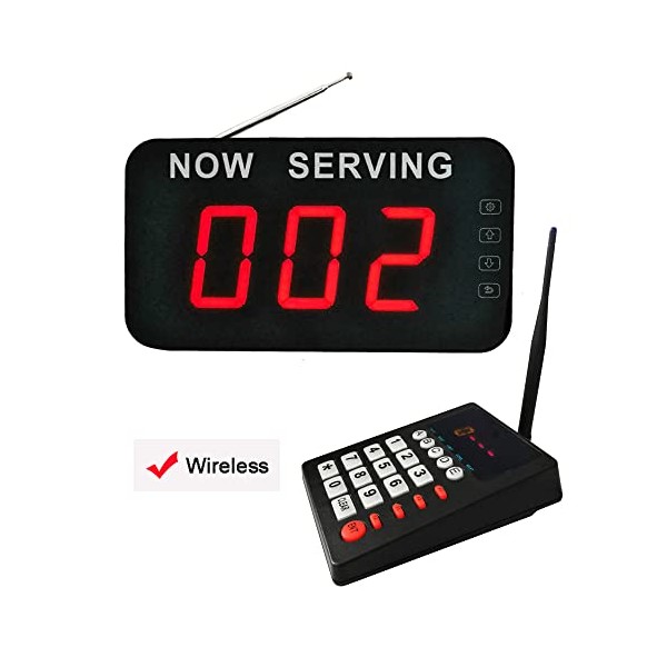 Take A Number System Wireless Queue Calling System Now Serving Queue Management System Waiting Number System 3 Digit for Restaurant Hospital Medical Clinic Bank Counter Office (1 Keypad 1 Display)