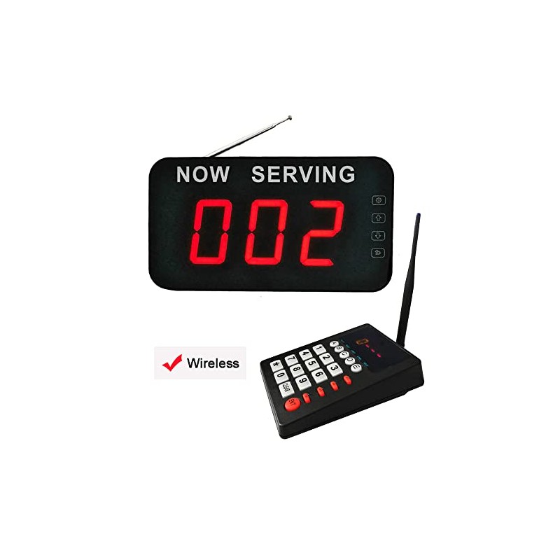 - How to work: give a numeric serial number within 999 to the customers, when order is ready, just press the number you want to call, the wireless displays will show calling number on the screen accompanied by voice, easy to alert the customers.