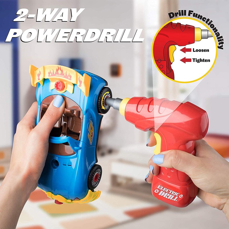 Take Apart Racing Car Toys - Build Your Own Assembly Vehicle with 30 Piece Constructions Set and Working Electric Drill - Engine Sounds & Lights