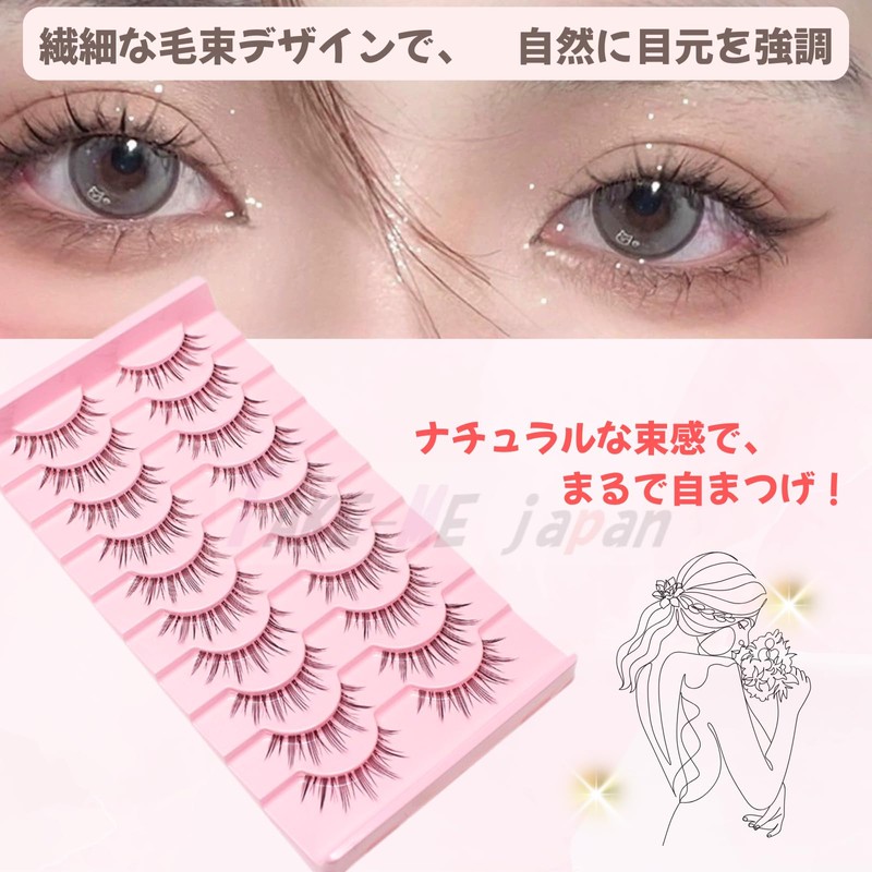 TAKE-ME japan Natural False Eyelashes, 10 Pairs of Eyelashes, Popular, Transparent Axis, Actress Eyelashes, Manga-Style Makeup, Large Eyes, Cosplay Events, Lightweight, Soft