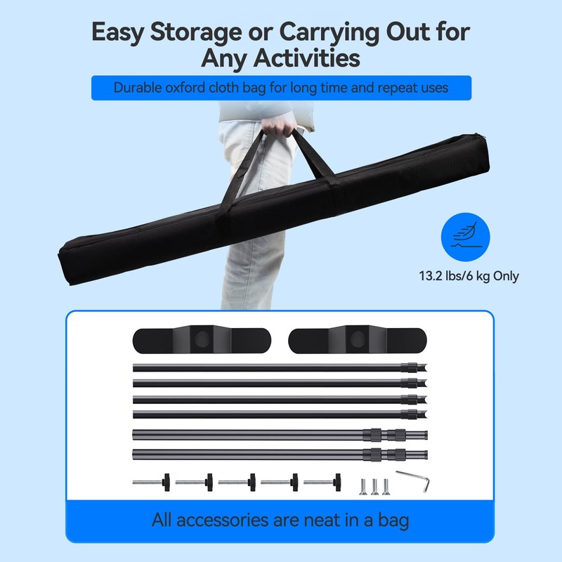 - 【Wide Uses】 The background stand kit is perfect for different scene decorations or displays thanks to the upgraded stable and adjustable design. It would be a must-choice for party decorations, conferences, photography displays, local fairs, store promotions, exhibitions, photography background, and other business or personal activities.