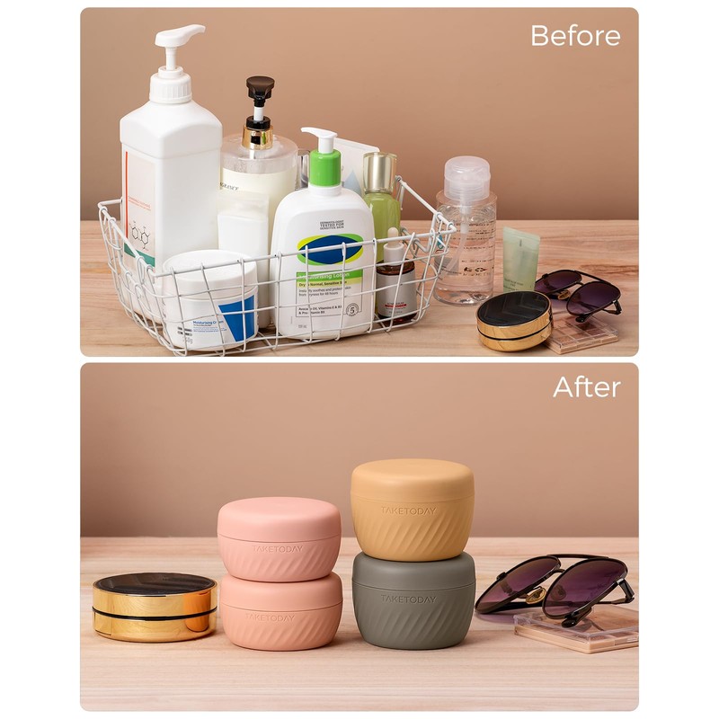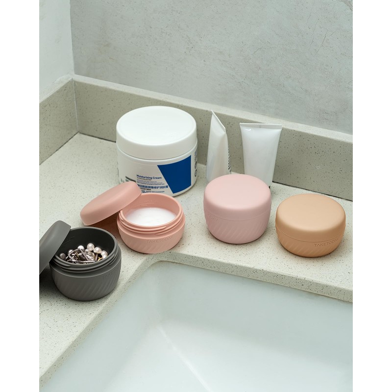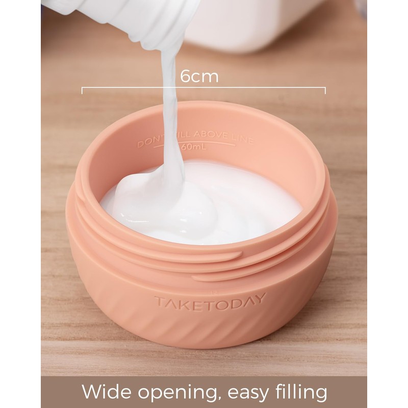 TakeToday Travel Containers for Toiletries, Leak-proof, TSA Approved, Refillable Silicone Cream Jars with Lid Travel Size Essential for Cosmetic toiletry Cream, 2 &3oz, 4 Pack (Apricot)