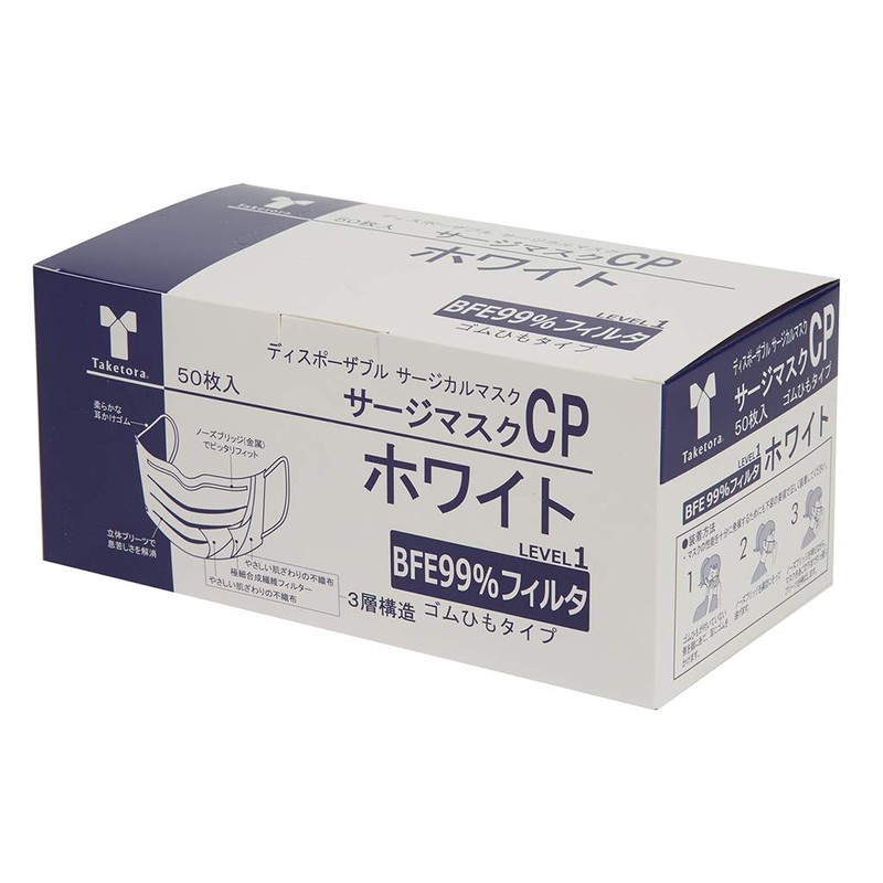 Taketora Surge Mask CP Metal Nose Bridge White Pack of 50