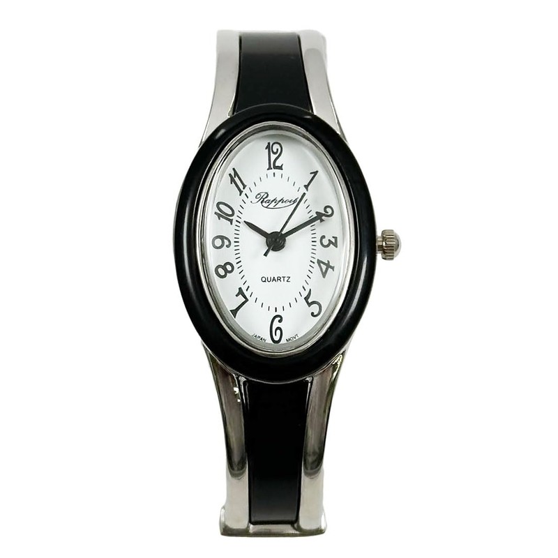 Takeuchi Shoji Rapport 188232 Women's Oval Bangle Watch, Silver Slim Watch, Black, Black, Classic