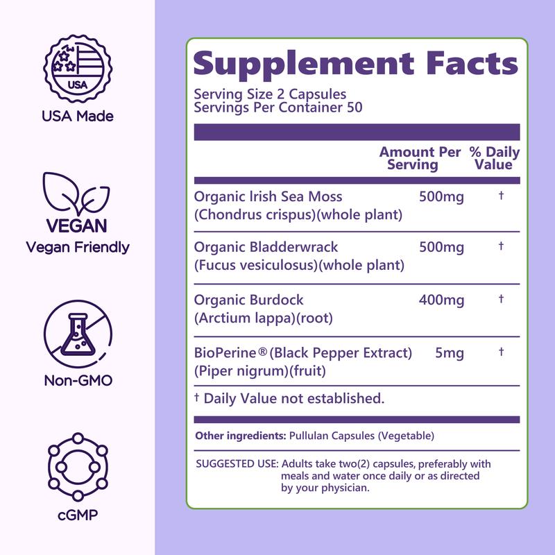 Immune & Energy Support: Boost your immune system and maintain steady energy levels with Irish Sea Moss and Bladderwrack.
