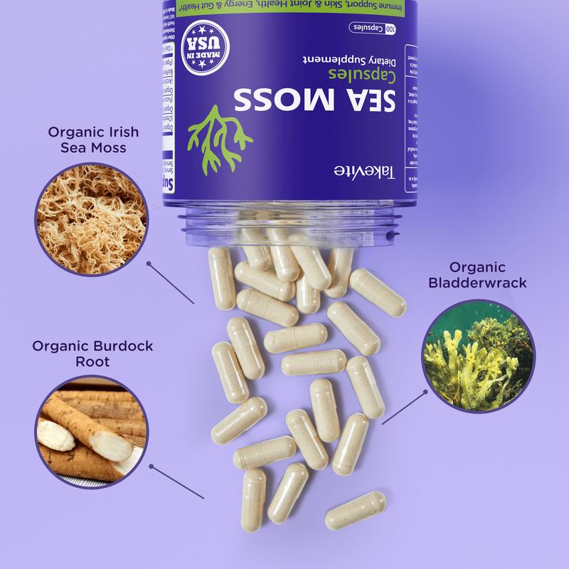 Takevite Organic Sea Moss Capsules – Immune, Skin, Joint, Energy & Gut Health...