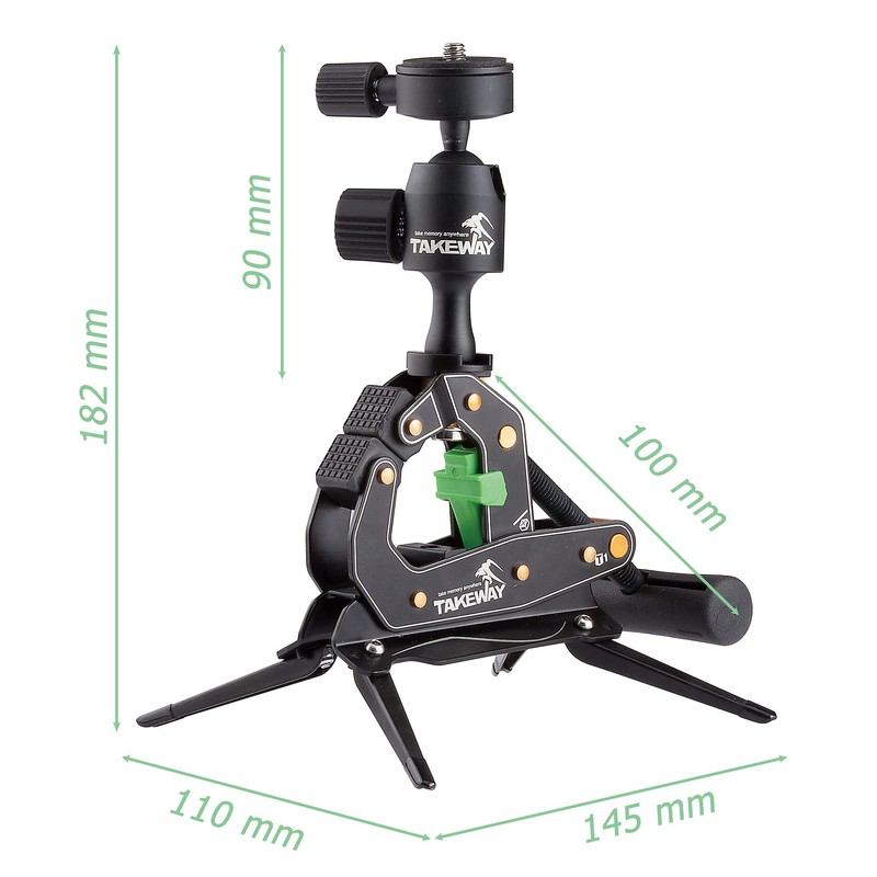 TAKEWAY Camera Clamp Mount Tabletop C Clamp Mount Stand with Phone Holder, 360°Rotatable Mini Ball Head and 1/4" Screew Quick Release Clamp for GoPro/Brinno/DSLR/MILC/SLR Camera and Smartphone
