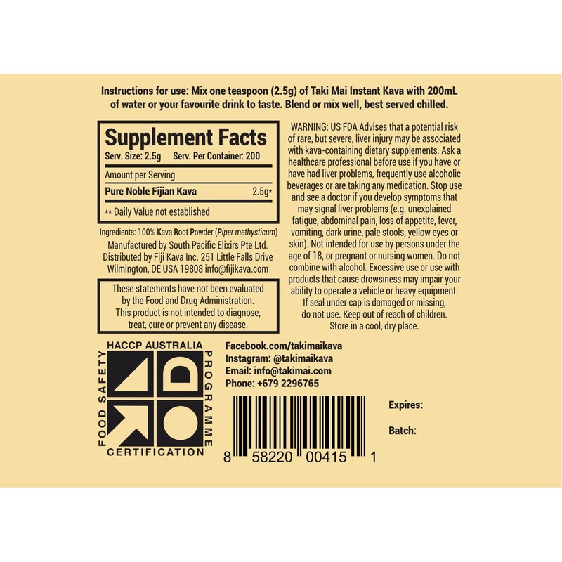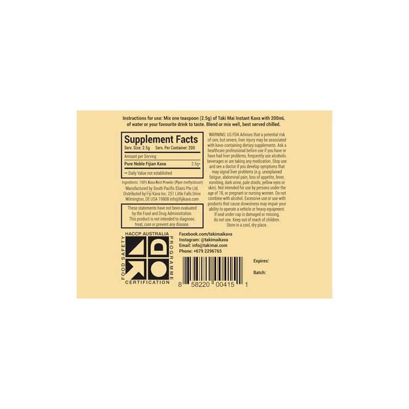 Taki Mai Instant Kava Kava Powder 500g – Premium Kava Root Powder with High Kavalactone Content – Natural Relaxation Aid for Calmness, Stress Relief, and Sleep Support – Easy-to-Mix