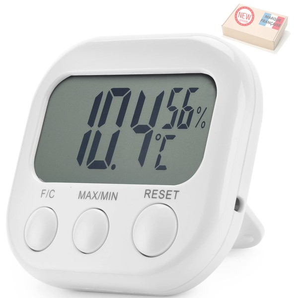 • Easy to read and easy function: The Takit thermometer and hygrometer has no complicated function buttons. It has a clear digital display that is easy to read even from a distance. With just three buttons under the screen, you can either use Celcius/Fahrenheit, reset the tool or display the minimum/maximum recorded data. Powered by: 1 x AAA battery (not included).