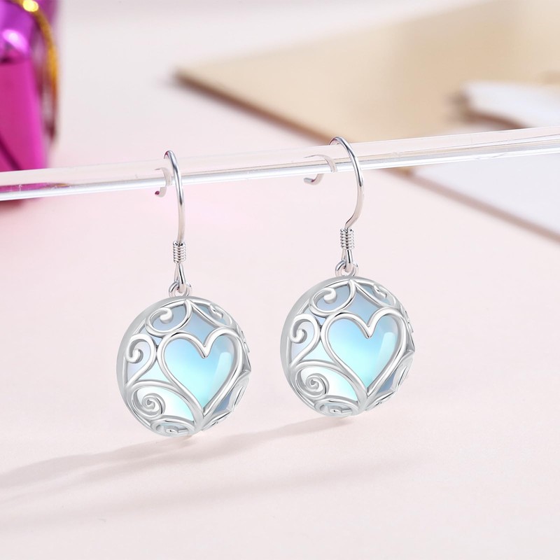 - Moonstone Earrings: These are heart drop moonstone earrings for women. The silver bars are curled and wrapped around the moonstone, and a heart shape is hollowed out in the middle, allowing you to better appreciate the luster of the moonstone.