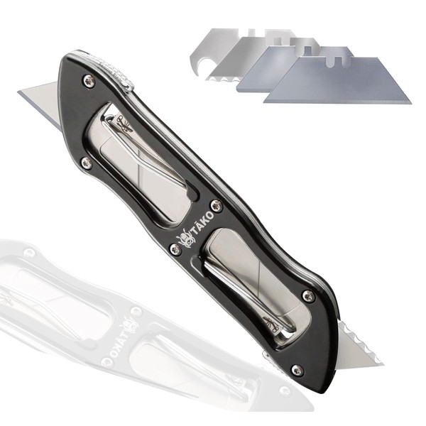 TĀKO X4- Retractable Utility Knife, Instant Access to 3 Extra Blades, Box Cutter, Quick Change, Lightweight, Pocket Knife