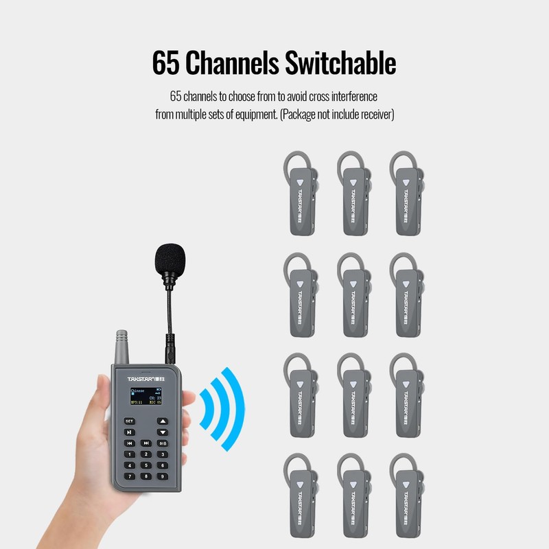 - Wireless one way audio communication system offers an unobstructed use distance of up to 200 meters, allowing multiple earphone receivers to be used within the transmission range. Good for tourism, religious activities, simultaneous interpretation, reception visits, large conferences, lectures, industrial production, etc.