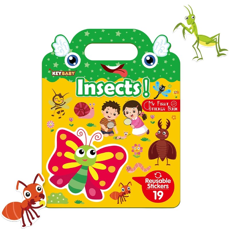 TAKTIK Rubber Stickers for Children – I'm learning to know insects, play background for sticking and 19 stickers, reusable and waterproof sticker set for kids