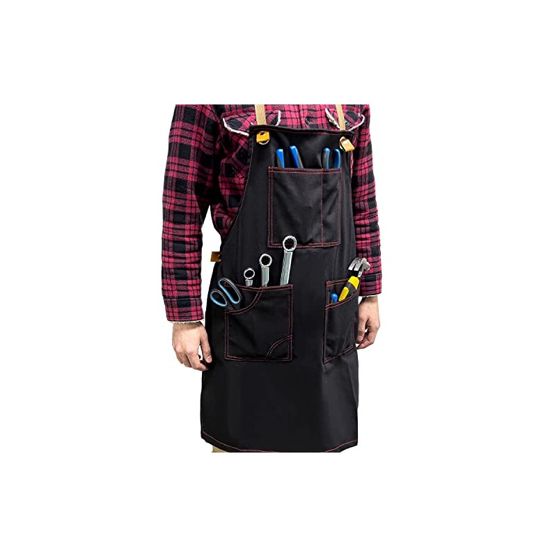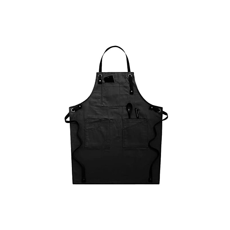 TaktZeit Chef Apron Woodworking Apron Waterproof Cross Back Apron with Multipurpose Pockets and Adjustable Straps, Black, Basic