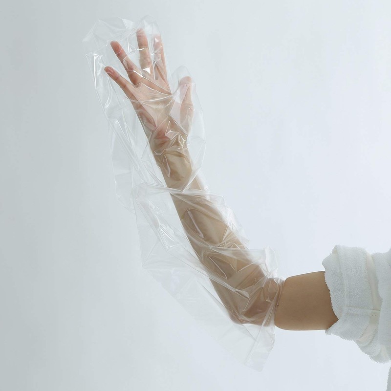 - ビニール袋や買い物袋を腕に巻いてシャワーを浴びるのは非常に不便です。こちらの製品は買い物袋などよりも足に装着しやすい腕の形をした使い捨てのビニールカバーです。 薄手で透明なビニール素材のため、外出先や旅行先でも手軽に装着ができ目立ちません。 繰り返し利用することができる別売りの防水ギブスカバーと併用することで、ギブスや包帯を水濡れからさらに厳重に保護することが可能です。 商品サイズ(長さx幅):67cm x 21cm。内容量:2枚入 使用方法:直径3.5cmの間口を腕やギブスが通るように広げてから装着してください。入り口部分にゴムなどは埋め込まれていませんので、間口が広がってしまった場合にはセロハンテープや大きめの輪ゴムを装着すると水が入りにくくなります。