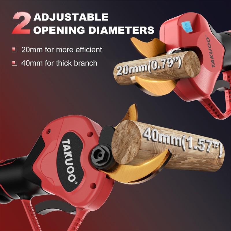 - ✅【POWERFUL&STRONGE BLADE】The Takuoo cordless pruner’s blade is made of Titanium SK5 high carbon steel. This material is sharp, powerful that you can easy cut branches over 1.6inch (40mm) quickly . It can be quickly pruned, clean and flat and does not damage the branches.