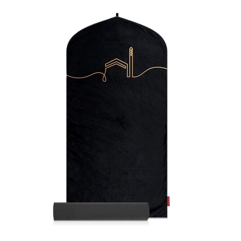 TAKVA EasiClean™ Indoor Prayer Mat | Kaaba Collection (ComfitPlus, Kaaba Black) Padded memoryfoam Prayer Rug, Muslim, Islamic Prayer Rugs