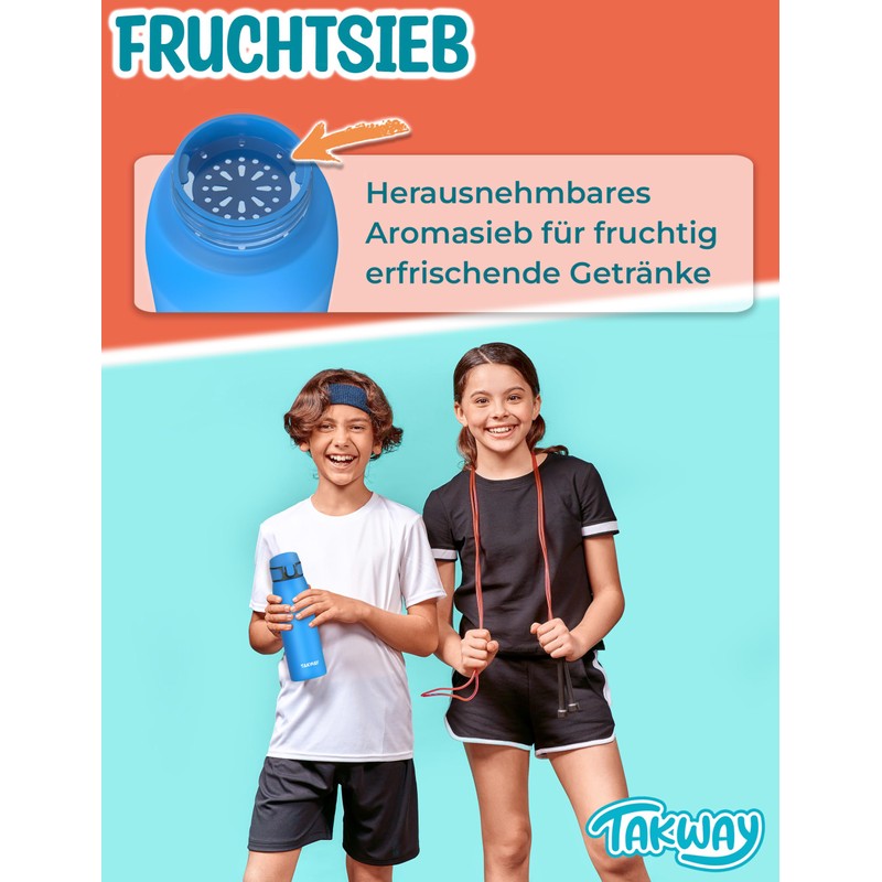 TAKWAY Children's Drinking Bottle Leak-Proof with Fruit Strainer 600 ml - Tritan, BPA Free - Suitable for Carbonated Drinks - Bottle for School, Sports (Green)