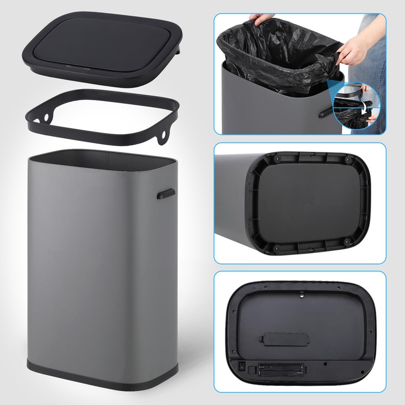 - Effortless Cleaning and Maintenance: The smooth surface of the automatic trash can makes cleaning a breeze, requiring only a quick wipe with a damp cloth or disinfectant. The removable inner bucket simplifies emptying and cleaning, making maintenance hassle-free and ensuring that the trash can remains clean.