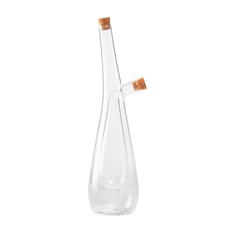 Tala Oil Pourer and Drizzle, Elegant Glass Drizzlier to Store and Pour Both Oil & Vinegar, Duel storage in contemporay curved design with Cork stoppers and holds 275ml and 125ml