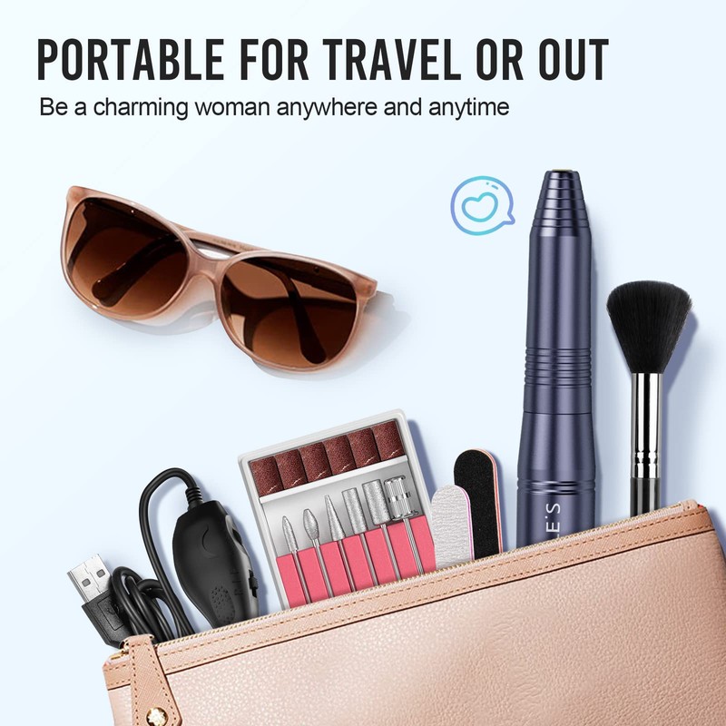 Taladro eléctrico de 20000RPM Efile compacto y portátil Kit de lima de uñas profesional para manicura y pedicura para uñas de acrílico, gel y uso en el salón de casa, gris