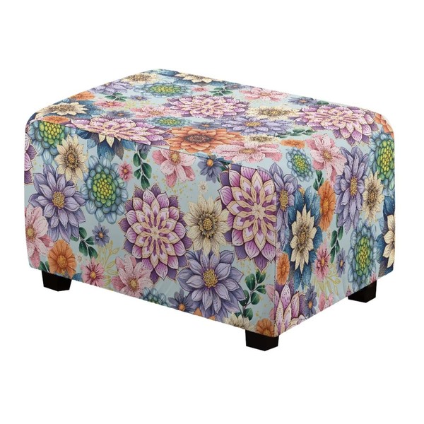 Talayituse Boho Mandala Flower Print Ottoman Cover Rectangle Waterproof Ottoman Slipcover Rectangular Thick Storage Footrest Stool Covers Furniture Protector for Pets, Small