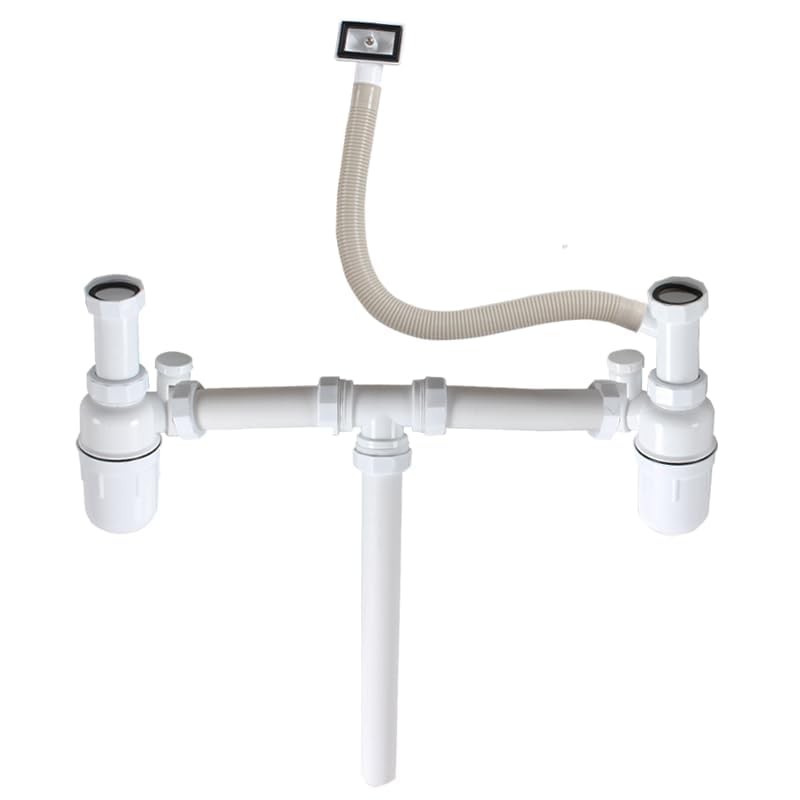TALEA Double Drain Pipes with Overflow,G1 1/2" Plumbling Kit,Waste Bottle Traps White,U