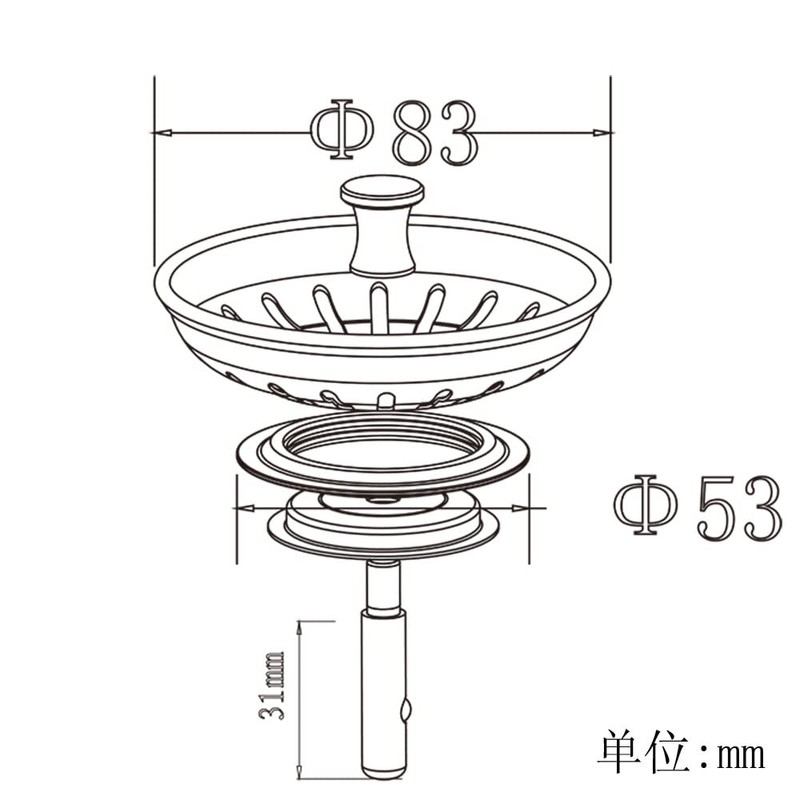 - 【Universal Size】 The outside diameter of kitchen sink strainer is 83mm, sized for most UK users. The rubber seal diameter is 53mm, and the bearing-to-ring measurement is 31mm. ATTENTION: Please confirm the hole diameter of your sink strainer is 84-85mm before placing the order!!!