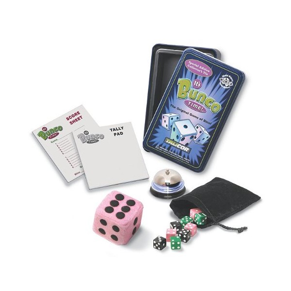A game of dice, luck and prizes. Ring the bell and roll the dice as your partner cheers you on in accumulating points. The pace gets faster as your opponent takes the dice and rolls to try to beat your score. The original game of dice now in a unique collectors tin.