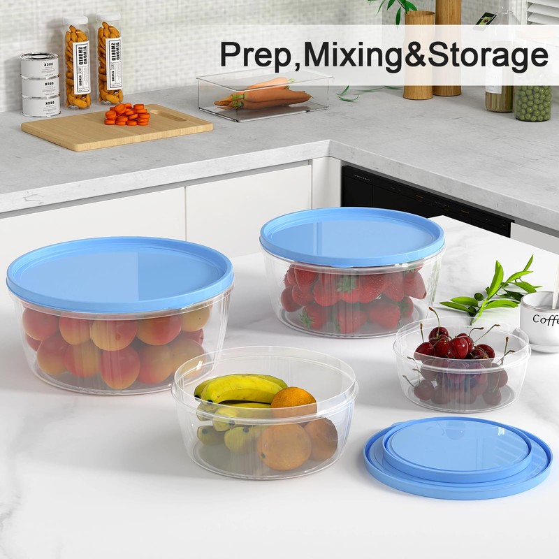 TalingMA Mixing Bowls with Lids Set, 17 Pieces Plastic Nesting Mixing Bowls Set Included 4 Prep bowls and 4 Lids Microwave Safe Dishwasher Safe for Food Prep Storage Serving, Blue