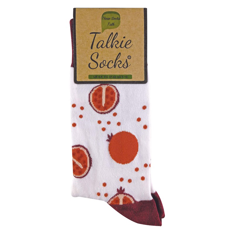 TALKIE SOCKS - Ladies Cotton Rich Quirky Funky Novelty Design Fruit Socks (4-8 UK, Pomegranate)