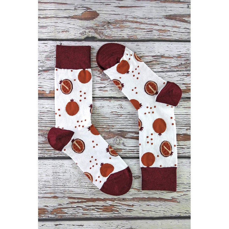 TALKIE SOCKS - Ladies Cotton Rich Quirky Funky Novelty Design Fruit Socks (4-8 UK, Pomegranate)