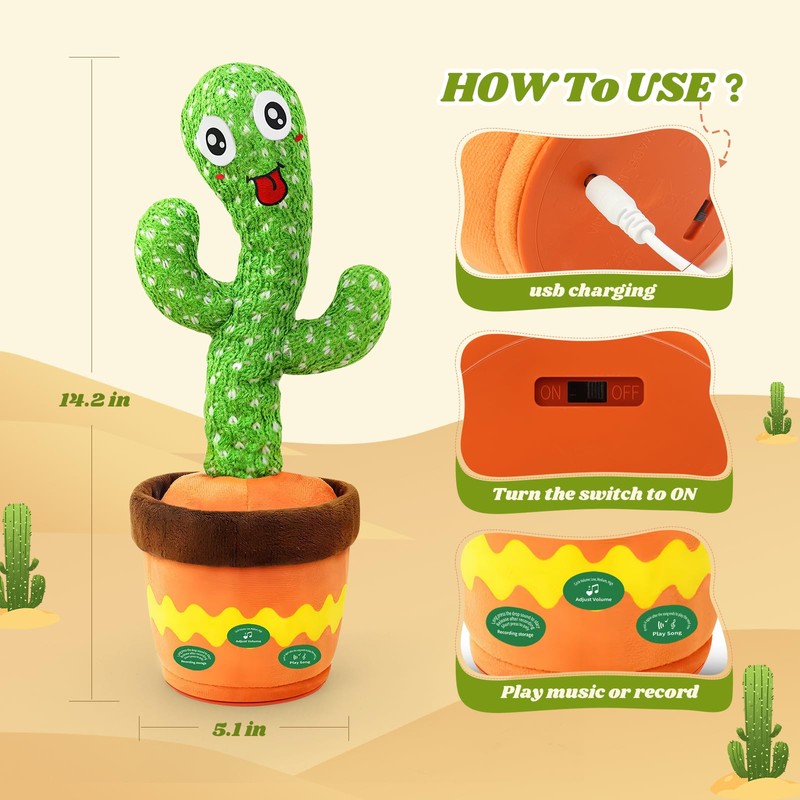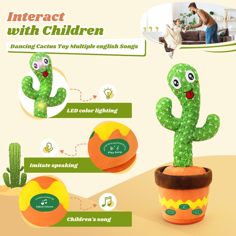 YMLTP Talking and Dancing Cactus Toy, Mimics Sounds, Plays English Nursery Songs, USB Rechargeable, Soft Plush, LED Lights, Interactive Baby Gift for Boys and Girls