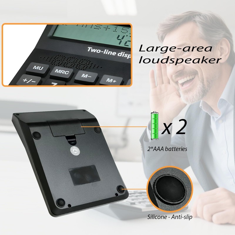 Talking Desk Calculator for Low Vision,Basic Desktop Calculators with Big Buttons 2 Line Display,4 Function Simple Calculator for Weak Sight & Visual Impaired