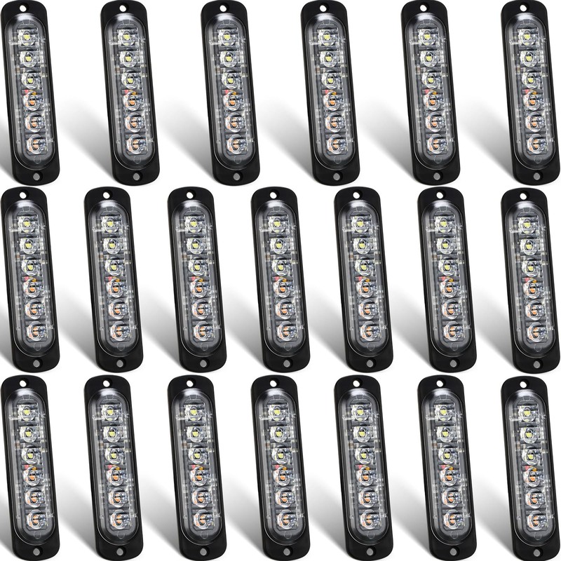 20 Pack LED Emergency Strobe Lights 6 LED Amber White Surface Mount Flashing Lights Warning Emergency Flashing Lights Construction Caution Lights for Truck off Road Car Firefighter Vehicles ATV SUV