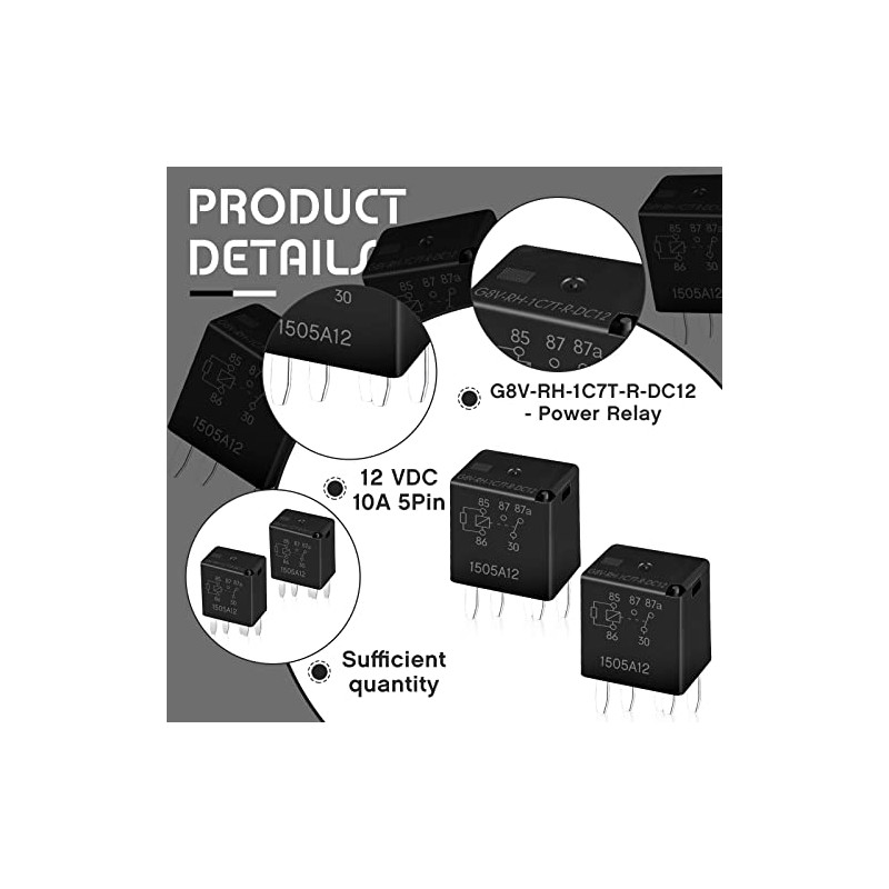 - Proper Model: the model of multi purpose relay is G8V-RH-1C7T-R-DC12, suitable for voltage of 12V, designed with 5 pins, and the relay is in classic black color; Please notice the model before ordering