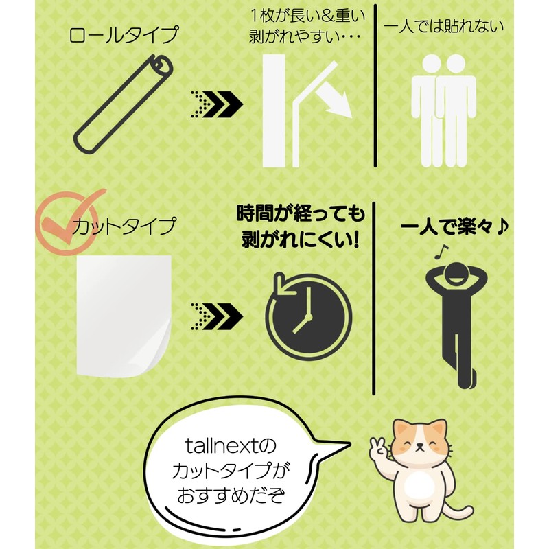 Tallnext is a scratch-resistant sticker for walls and furniture caused by snagging and scratching by pets such as cats and cats. Clear and colorless to protect the view. The sheets are soft, highly transparent and difficult to notice. They are cut to just the right size and can be repositioned after several times.