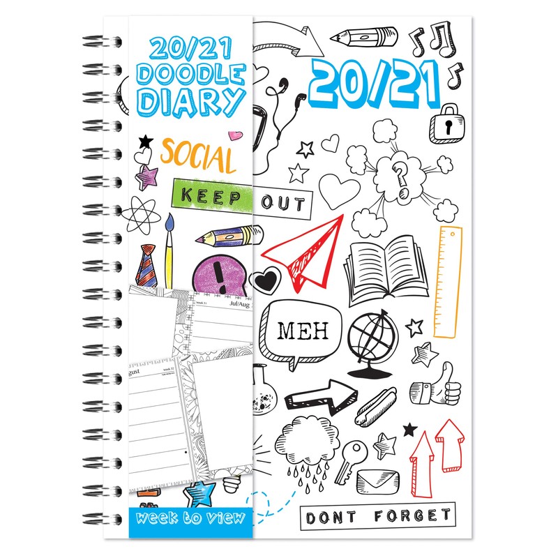 - 2018/ 2019 Academic Year A5 Spiral Bound Week To View Diary with Polypropylene Cover. With Colour Therapy Patterns and Designs.
