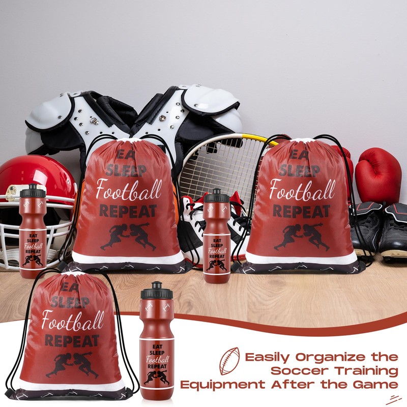 - Package Includes: our football water bottle set includes 1 reusable plastic water bottles, each with a 24 oz capacity; 1 football drawstring bags, each size is 13.39 x 16.93 inches ensures to meet your different needs