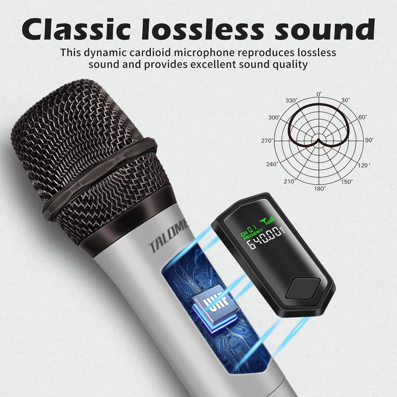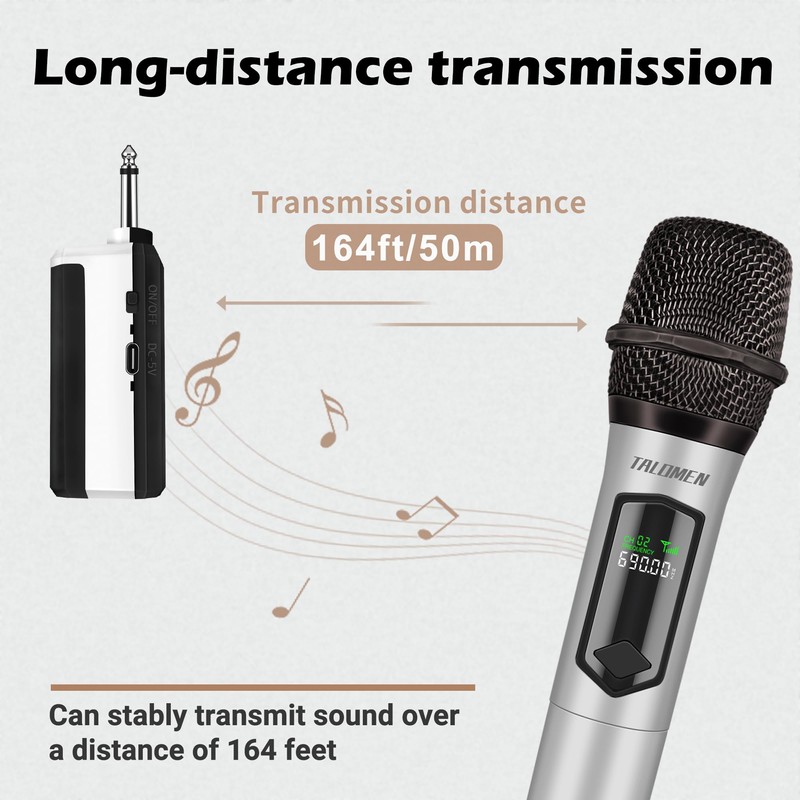 talomen 2.4GHz Professional Wireless Microphone,Cordless Handheld Dynamic Microphones,Mic System for Singing with Rechargeable Receiver,160ft,for Singing Karaoke,wedding,DJ,party,speech,K60-1 Silver