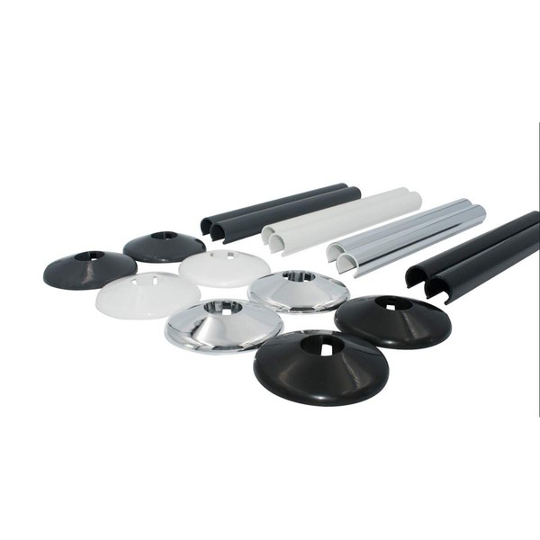 This kit comprises of 2 x 200mm lengths of Snappit 15mm chrome covers and 2 x 18mm chrome pipe collars.