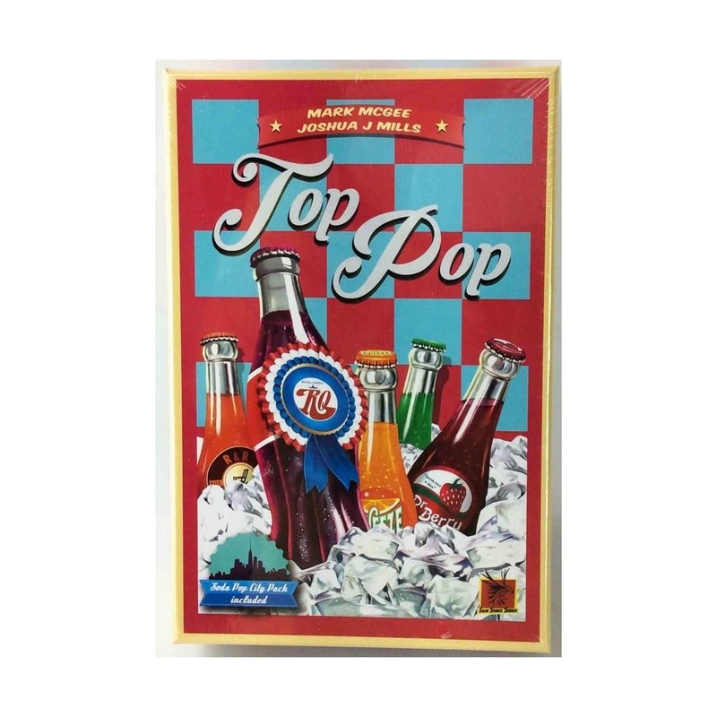 Top Pop is a card game where players place city cards on the table and stack bottle caps (which represent the company's iFootballuence) on the played cities on the table. At the beginning of the player's turn, when his bottle cap is on a higher pile than the other players on a city map, this player collects that city. If not, they continue to try to gain dominance on city maps where they can. Each city comes in two types: day and night. Day city cards are played face-up on the table for everyone to see. Night city maps are played face down and only the player who played the map and whoever it is can see. At the end of the game, players earn points for majority control in a city and collected cities.